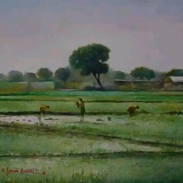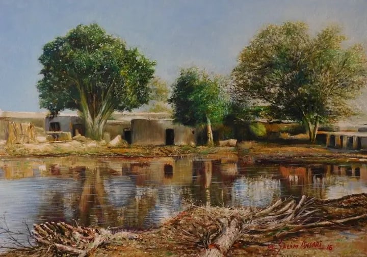 Ansari’s works have been widely exhibited across Pakistan and internationally, with more than two decades of solo shows at renowned galleries such as Nomad Gallery, Nairang, Jharoka, Studio Seven, and the Alhamra Arts Council. He has also taught for over twenty years, serving as Assistant Professor at the National College of Arts and conducting numerous workshops and summer programs in painting. His artworks are part of major public and private collections, including Alhamra, UNICEF, American Express Bank, Engro, Pakistan Military Academy Kakul, and various government institutions. Dedicated to both practice and pedagogy, Salim Ansari continues to contribute significantly to the contemporary art landscape of Pakistan.